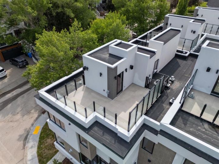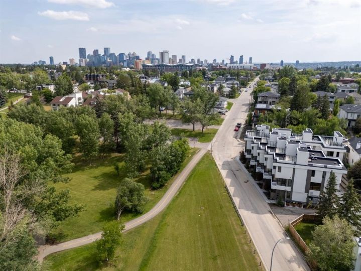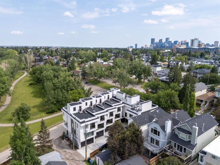 A rare opportunity to acquire an entire luxury 8-unit townhome complex directly fronting Confederation Park in coveted Capitol Hill. Century Park Townhomes were originally built for ownership and deliver exceptional craftsmanship, premium materials, and timeless architecture. Each unit features chef-inspired kitchens with gas ranges, floor-to-ceiling tile bathrooms, gas fireplaces, solid-core doors, and attached garages. Private rooftop patios include gas, electrical, and drainage rough-ins, with many units offering unobstructed park views. Heated driveway pads provide effortless year-round access. Six unique floor plans range from 2–4 bedrooms, with flex/den options ideal for executive tenants. This turnkey luxury rental asset offers outstanding tenant appeal, immediate possession, and an irreplaceable inner-city location minutes to downtown, SAIT, U of C, and major amenities.