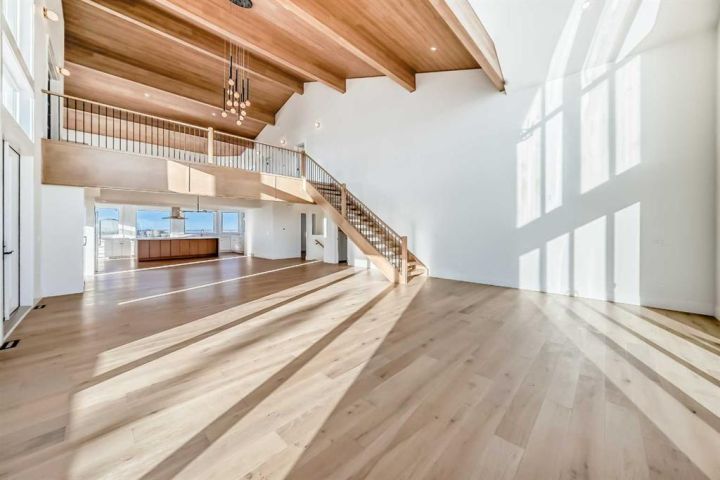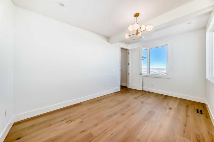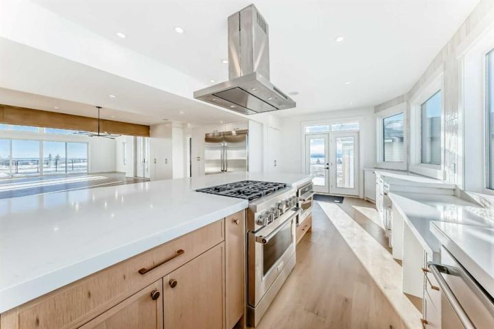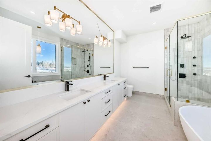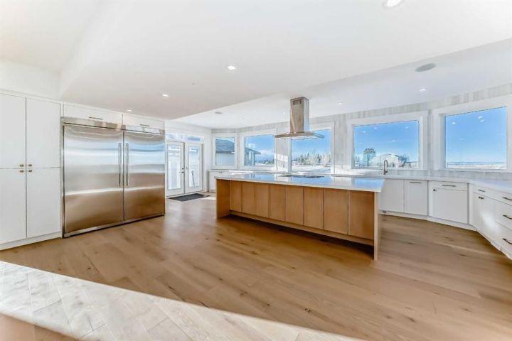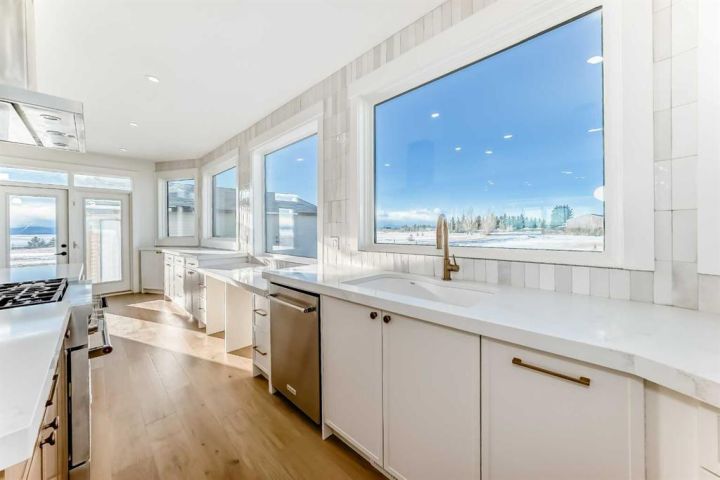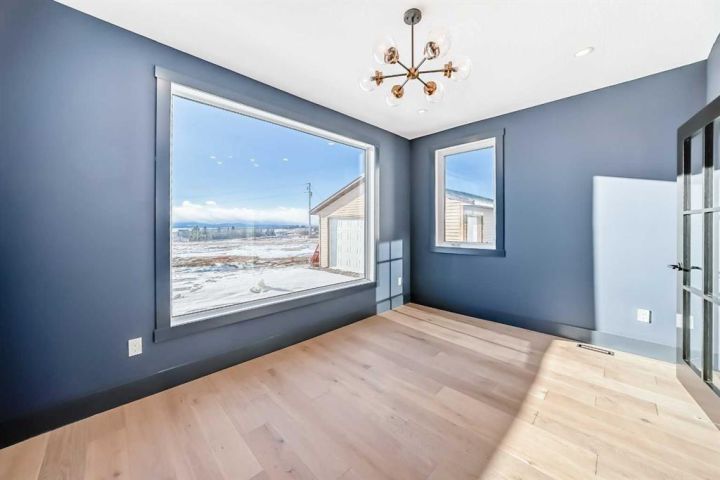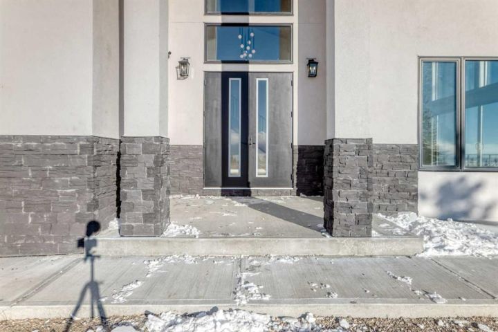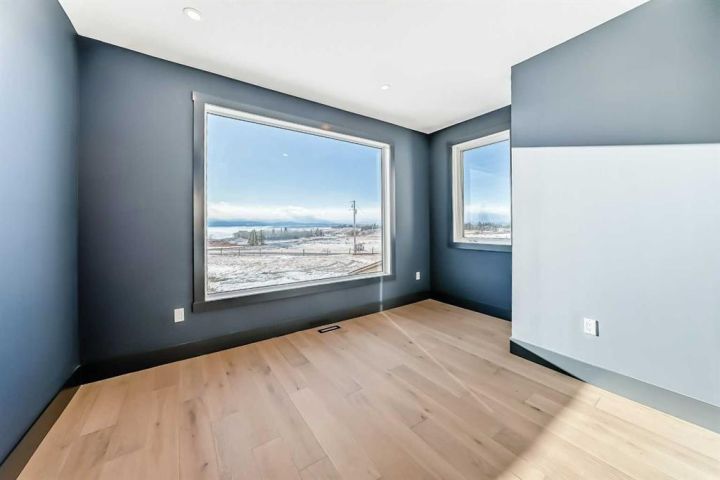 WELCOME TO THIS EXCEPTIONAL, FULLY RENOVATED ACREAGE set on over 4 acres just minutes from Cochrane, offering unobstructed 360° panoramic views of the Rocky Mountains and the Cochrane valley. Located in a quiet, cul-de-sac-style acreage community, this remarkable property provides privacy, peace, and minimal traffic—ideal for those seeking a refined country lifestyle with city convenience nearby. This striking 1.5-storey residence offers over 6,600 sq. ft. of total living space including a fully developed walk-out basement, delivering exceptional functionality for families, entertaining, and flexible living arrangements. The main level impresses with vaulted ceilings, exposed wood beams, and expansive windows that flood the home with natural light while perfectly framing the breathtaking views. The west-facing kitchen features high-end appliances, ample cabinet space and premium finishes—ideal for both everyday living and entertaining while enjoying spectacular sunsets and mountain views. The open-concept living and dining areas create a warm, inviting atmosphere. The main-floor primary retreat is complete with large windows showcasing the scenery and a luxurious 5-piece ensuite featuring a soaker tub, walk-in shower, dual vanities, and elegant finishes. A spacious second bedroom, a stylish 4-piece bathroom, convenient main-floor laundry, and a flexible den or office space complete this level. The upper floor offers an expansive bonus room with ample space for lounging, games, or a pool table. A bright sunroom, a 3-piece bathroom, and a dedicated flex space ideal for a home office, reading area, or hobby room round out this level, providing additional areas for relaxation, work, or creativity. The fully finished walk-out basement includes a large recreation room, a bedroom with a walk-in closet and 4-piece ensuite, a 2-piece bathroom, a laundry area, and a mudroom with exterior access—making this level ideal for guests, extended family, or added convenience. Outside, enjoy wide open views, ample parking, and excellent storage with a triple attached garage plus a double detached garage. The acreage offers great flexibility and future potential and may be suitable for short-term or vacation rentals, small event hosting, or agricultural and hobby use. A rare opportunity to own a fully renovated acreage with over 4 acres of land, a finished walk-out basement, and incredible views—all just minutes from Cochrane. Book your private showing today.