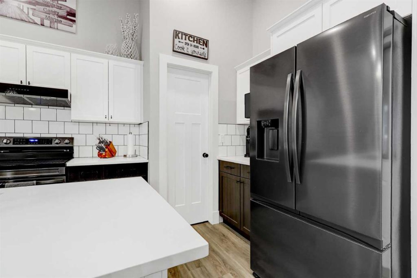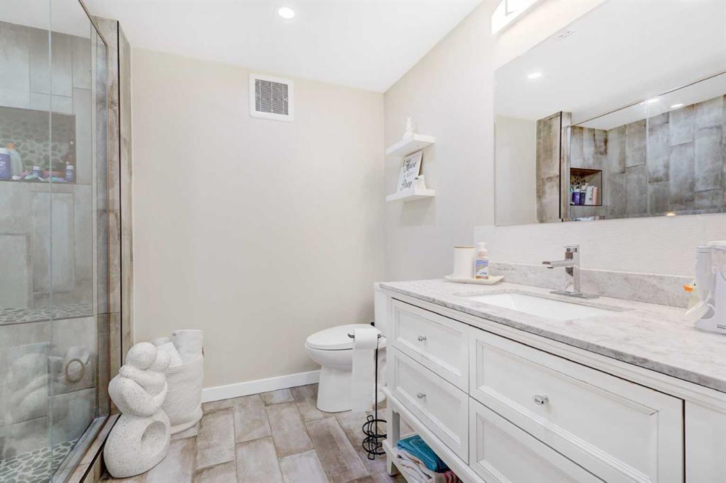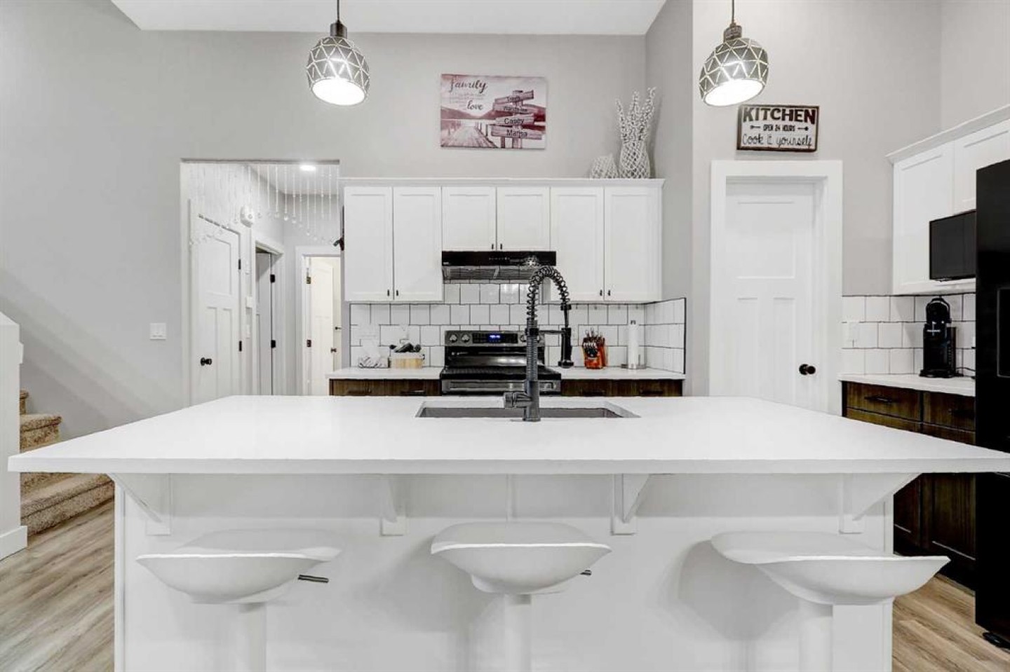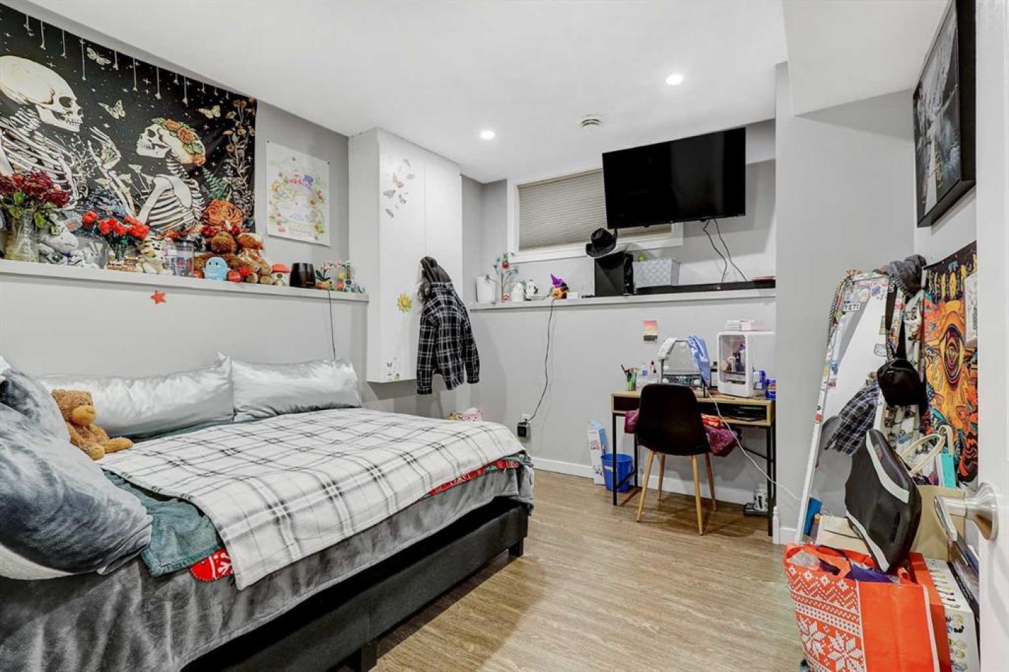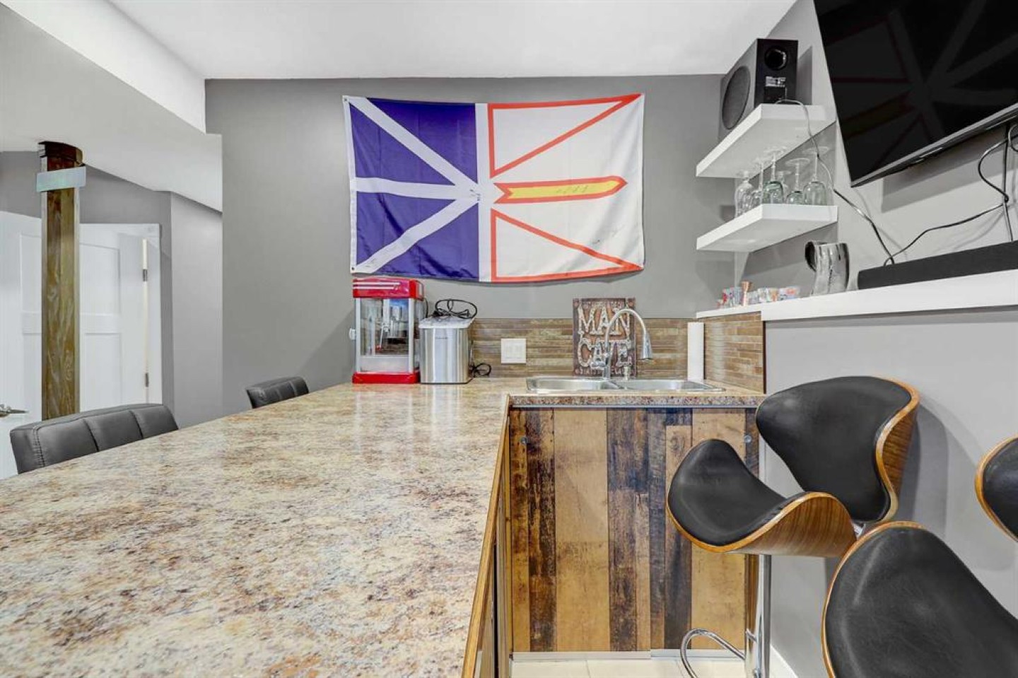 STUNNING, BETTER-THAN-NEW MODIFIED BI LEVEL FACING POND IN WESTGATE! This extensively finished modified bi-level sits in a sought-after pocket of Westgate, only a short walk from the new hospital, the college, multiple shopping districts, and a wide selection of restaurants. Built in 2018, the property offers a move-in-ready experience with four bedrooms, three bathrooms, a fully developed yard, a heated and insulated garage, fencing already in place, and an enclosed three-season deck. The home presents even better than new, featuring fresh interior paint, a new fridge and stove, a basement wet bar, and a remarkable custom shower constructed with tempered glass. The front entry showcases impressive vaulted ceilings and opens into a bright, seamless layout that blends the kitchen, dining area, and living room. The kitchen is equipped with quartz surfaces, a centre island with seating space, a walk-in pantry, generous cabinetry, and high-end appliances. The dining area easily accommodates a large table for gatherings and entertaining, while the living room is framed by an oversized window and an eye-catching fireplace. Two well-proportioned bedrooms, a full bathroom, and convenient hallway linen storage complete the main level. The private primary suite is set above the garage, offering a walk-in closet and a four-piece ensuite. The fully completed basement is a standout feature, offering an expansive family room, a full wet bar, a showpiece bathroom with oversized tile flooring and a tiled shower, and an additional spacious bedroom. The garage includes heat, insulation, and a utility sink with hot and cold taps. Outside, the backyard is fully fenced + landscaped and includes a covered three-season deck with storage beneath. (Hot tub is negotiable)