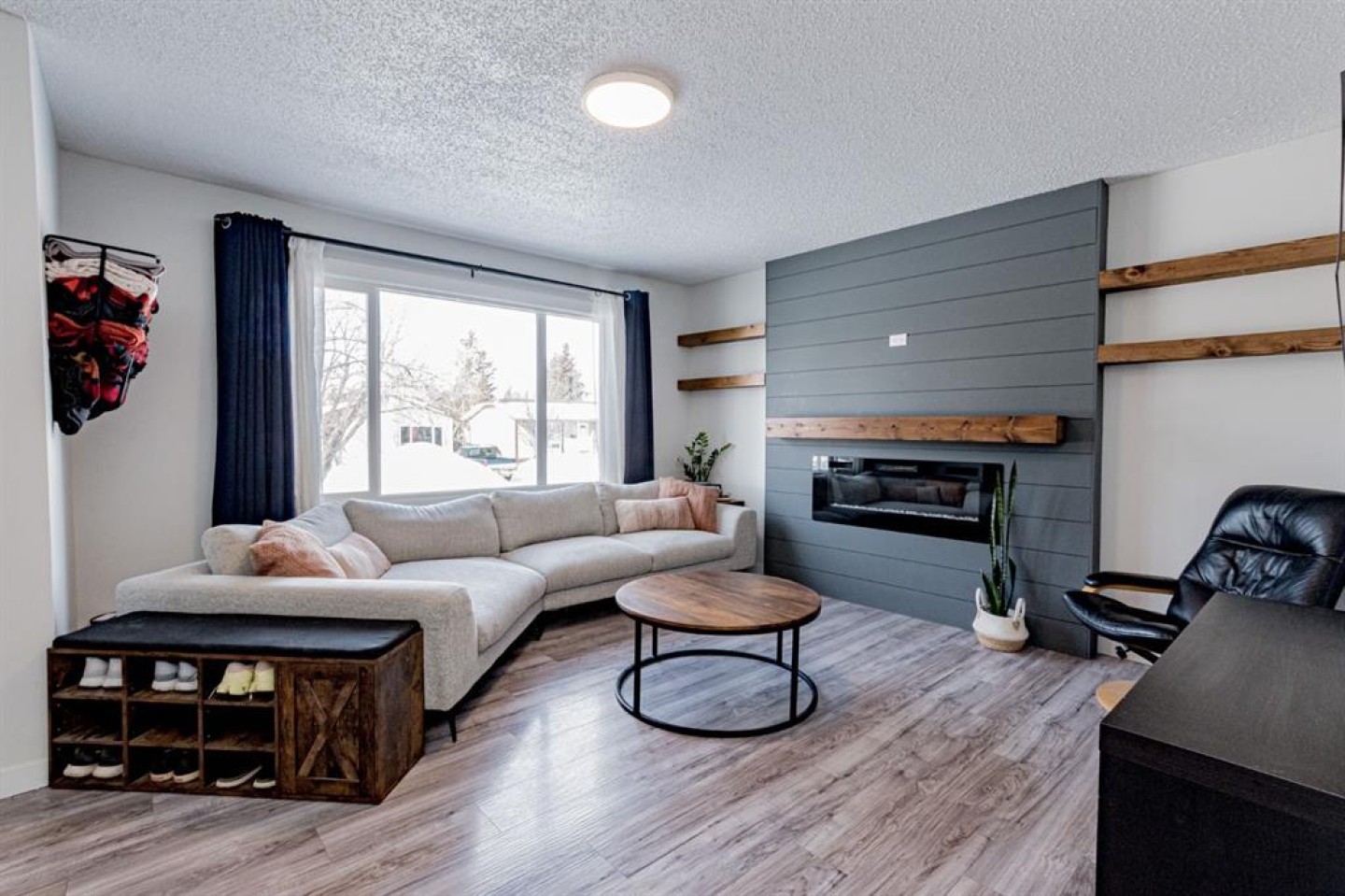 Welcome to this well-maintained half duplex in the desirable South Patterson neighbourhood! Situated on a quiet street and conveniently close to a nearby school, this home offers comfortable living in a family-friendly location. The bright main floor features large windows that fill the space with natural light, creating an inviting atmosphere throughout the living area featuring a fireplace. The cozy kitchen boasts white cabinetry and stainless steel appliances overlooking the backyard and offers direct access through the back door to the fully fenced and landscaped yard, perfect for relaxing or entertaining. A convenient half bath completes the main level. Upstairs, you’ll find a spacious primary bedroom along with two additional bedrooms and a full 4-piece bathroom, providing plenty of space for family or guests. The basement offers an open secondary living area ideal for a rec room, office, or play space, along with a large storage and laundry room for added practicality. This charming home combines comfort, functionality, and a great location, an excellent opportunity for families, first-time buyers, or investors alike. Book your showing today!