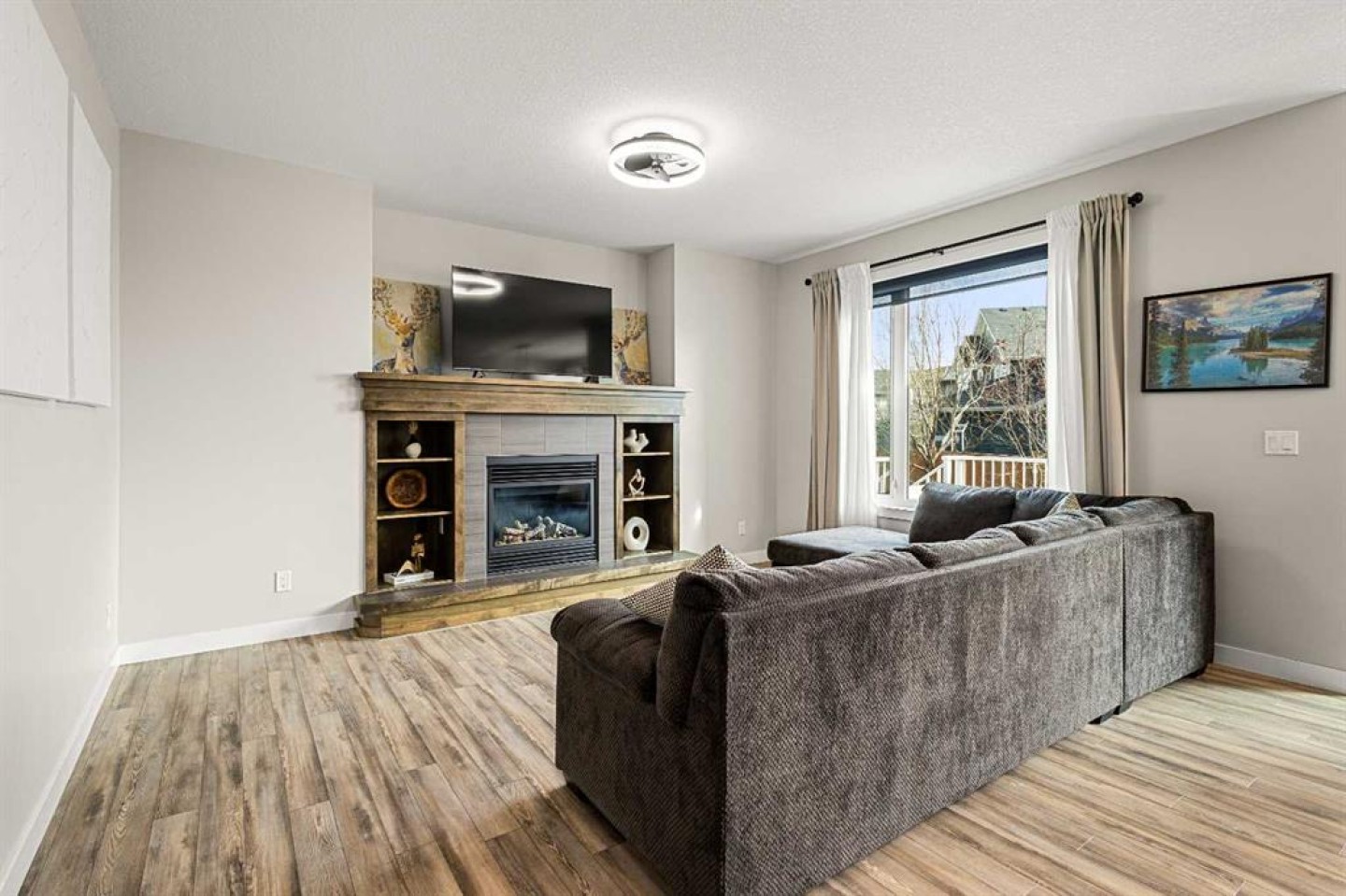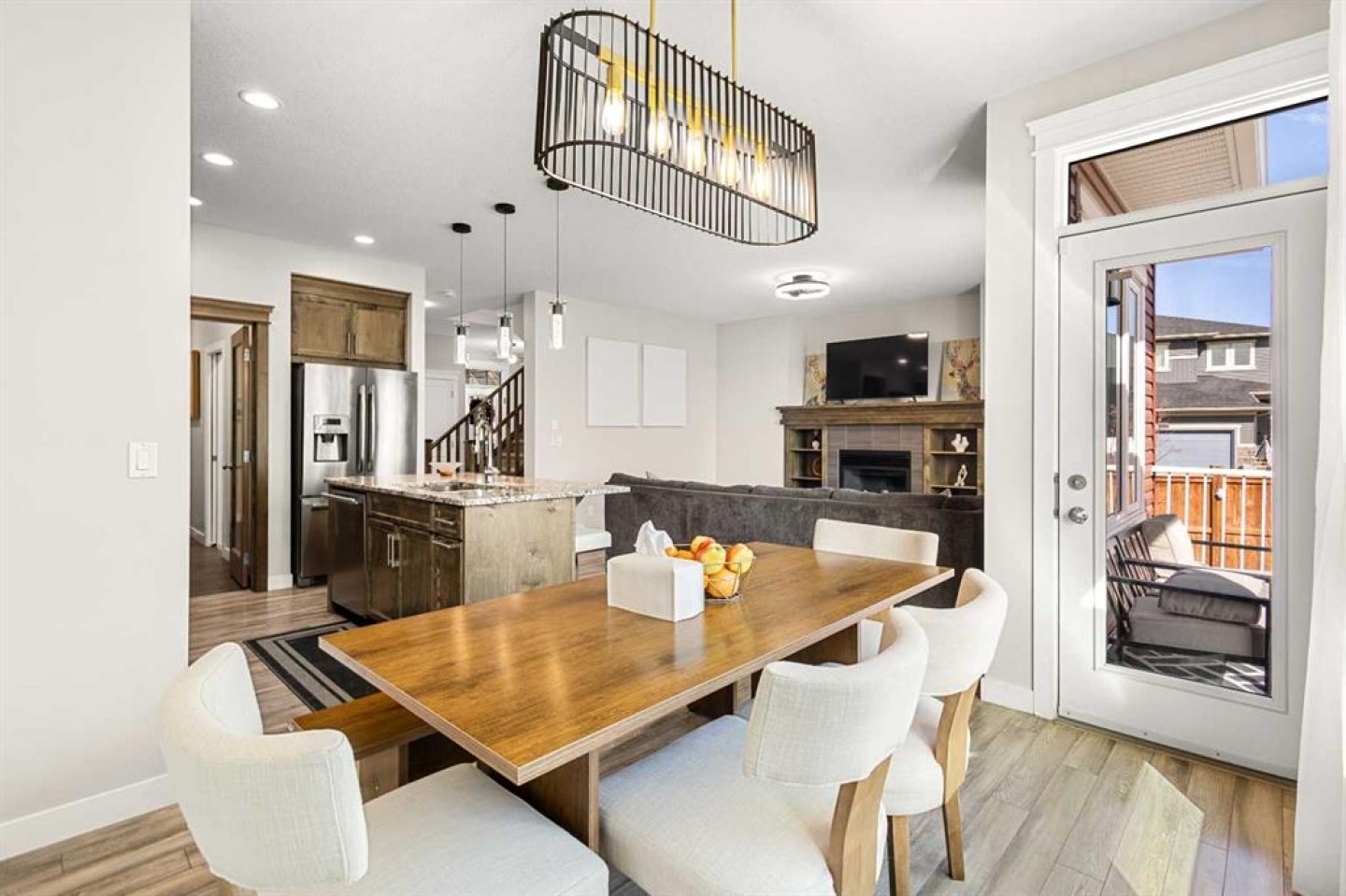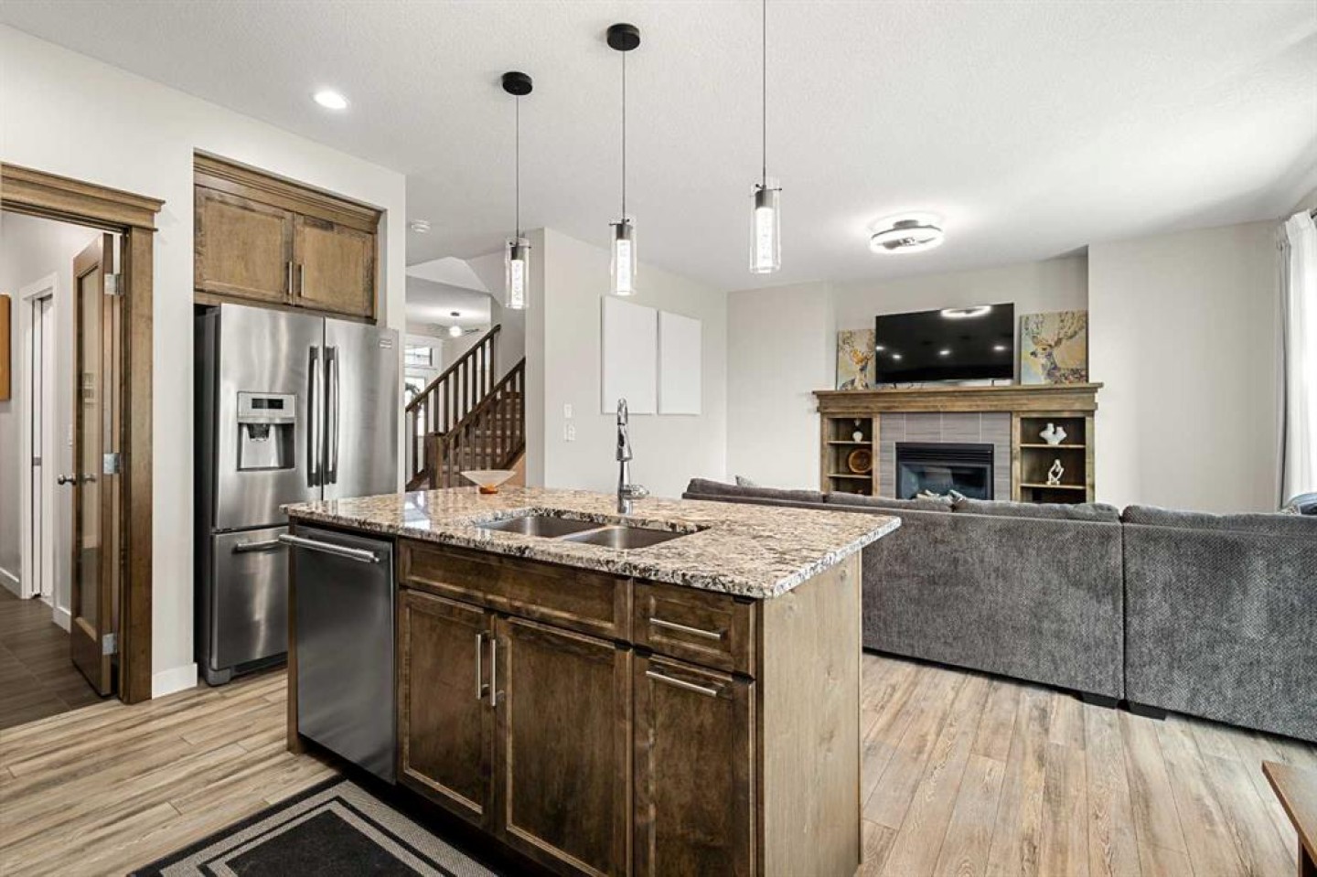This home stands out with 9-foot ceilings on all three levels, creating an elevated sense of space and light throughout. The main floor showcases a bright and inviting open-concept design, centered around a cozy fireplace that anchors the living area. Expansive windows flood the home with natural sunlight, while beautiful crown moulding throughout adds a refined, upscale touch. The kitchen is thoughtfully designed with granite countertops, upgraded stainless steel appliances, modern cabinetry, and a central island—ideal for both entertaining and daily living.